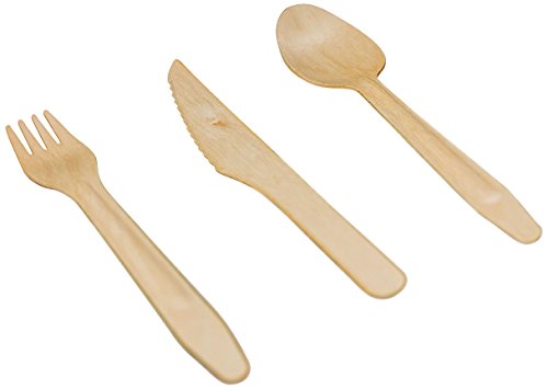 Disposable Wooden Cutlery 300pc Set Premium Elegant Utensils Combo by Eco Table 6" Length 100 Forks 100 Spoons 100 Knives Free Toothpicks Perfect for Travel Camping BBQ Functions or a Party, hopefully can help you in buying the product.
