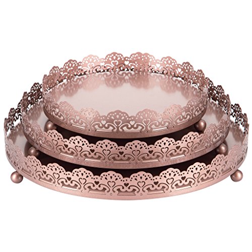 Sophia 3-Piece Rose Gold Decorative Tray Set, Round Metal Ornate Accent Vanity Food Display Serving Platter Holder Plates, hopefully can help you in buying the product.