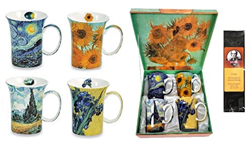 - Bundle 2 items: Set of 4 Van Gogh Classics Coffee or Tea Mugs in a Matching Gift Box and One Package of 6 Tea Bags
